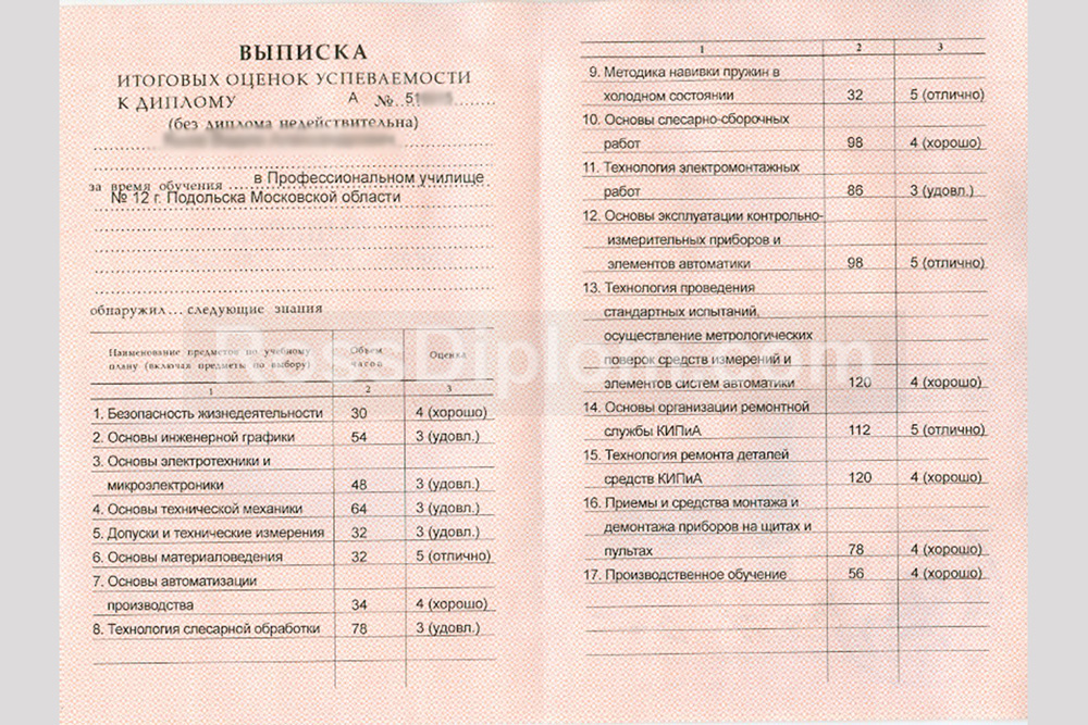 Образцы и цены дипломов ПТУ